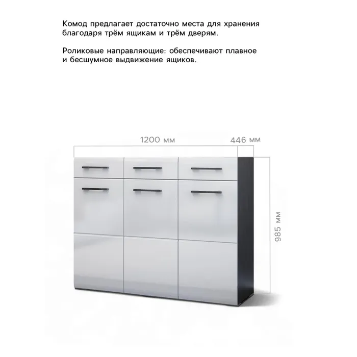 Комод для хранения «Ненси», 1200×985×446 мм, МДФ, цвет венге/белый глянец — Характеристики