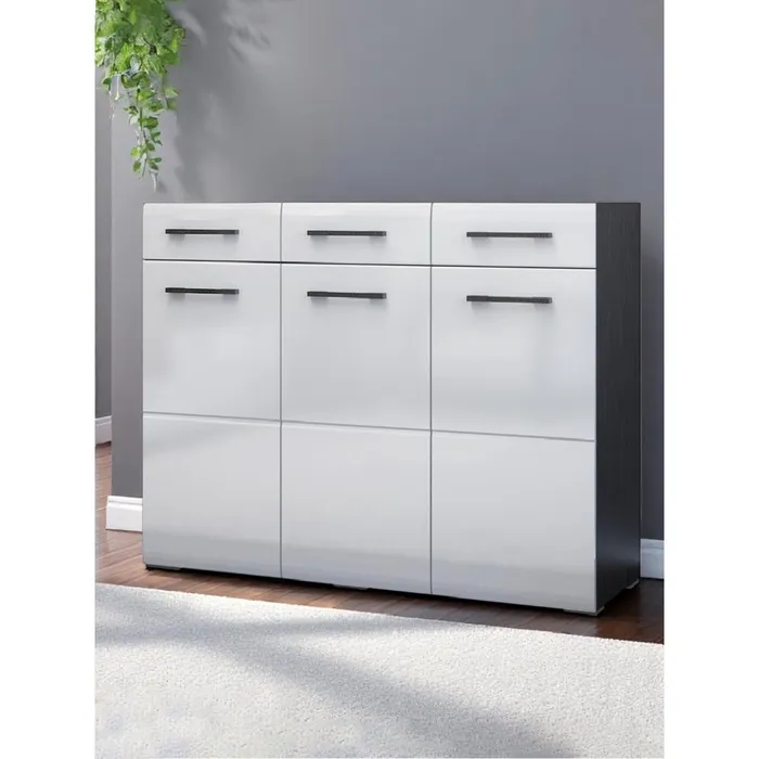 - Вместительность: Несмотря на компактные размеры, комод предлагает достаточно места для хранения благодаря трём ящикам и трём дверям.
