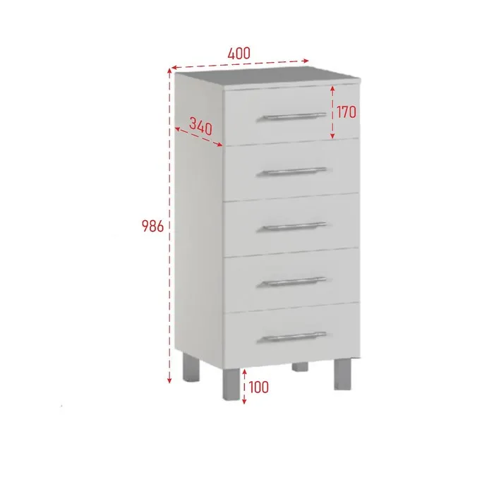 Комод для ванной комнаты, с пятью ящиками, 40 х 34 х 98,6 см — Характеристики