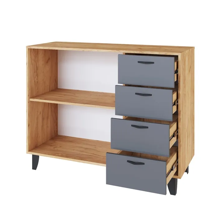 - Комод с двумя секциями: отделение с распашным фасадом и выдвижные ящики.