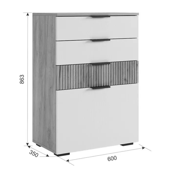Комод "Бери" 600х353х863 – стильный и вместительный. Удобный вариант мебели для хранения белья, постельных принадлежностей и личных вещей. Данная модель выглядит компактно и визуально не загромождает пространство. Она позволит вместить большое количество вещей. Ящики изделия выдвигаются полностью и плавно, не упираясь в стенки. Комод универсального цвета без труда подойдёт под спальный гарнитур и оформление комнаты.
