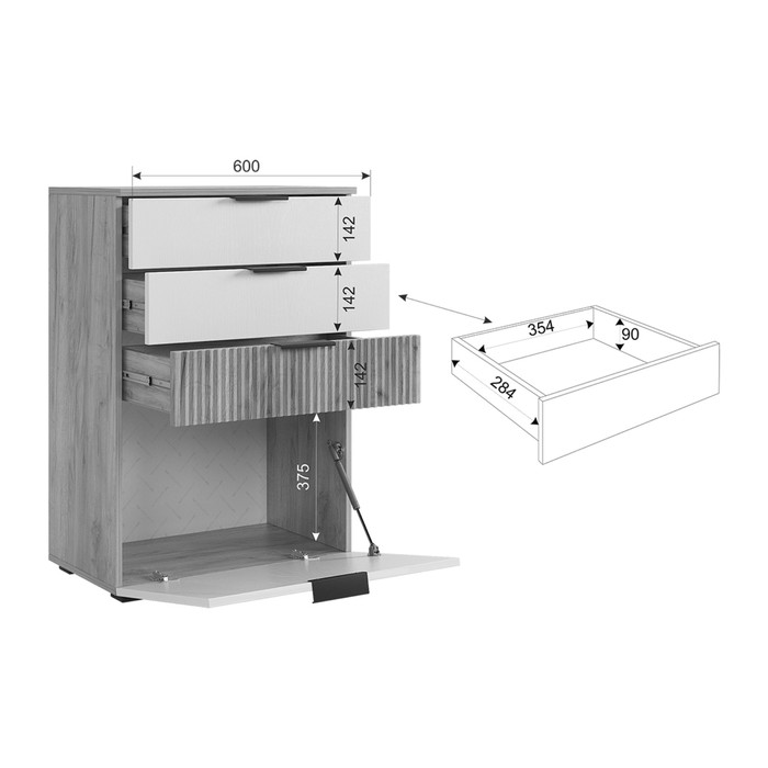 Комод напольный «Бери» 600×353×863 мм, цвет дуб крафт золотой/графит — Характеристики