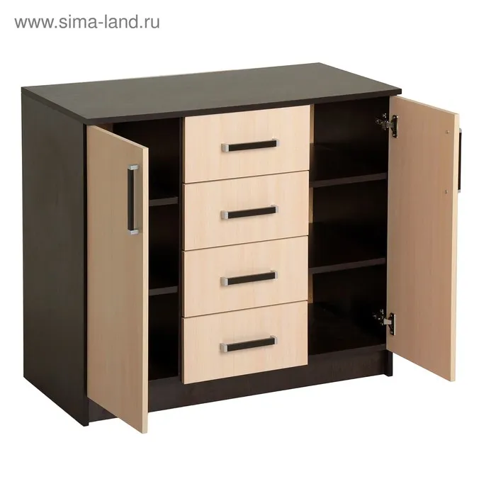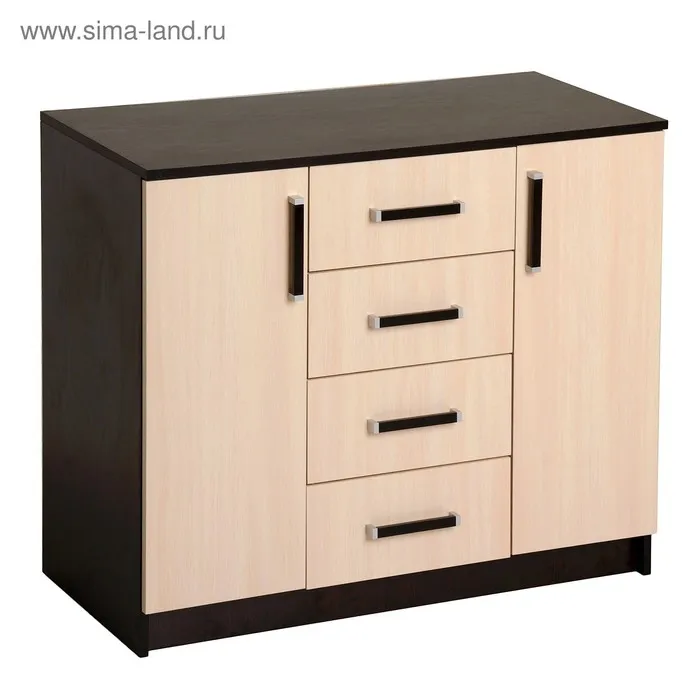 Комод напольный для спальни «Аура», 4 ящика, 2 дверцы, 820×1000×440 мм, цвет венге/дуб молочный — Характеристики