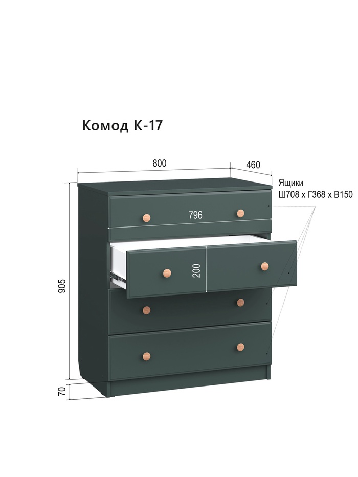 Комод напольный «Джулия», 4 ящика, 800×460×905 мм, цвет авокадо — Характеристики