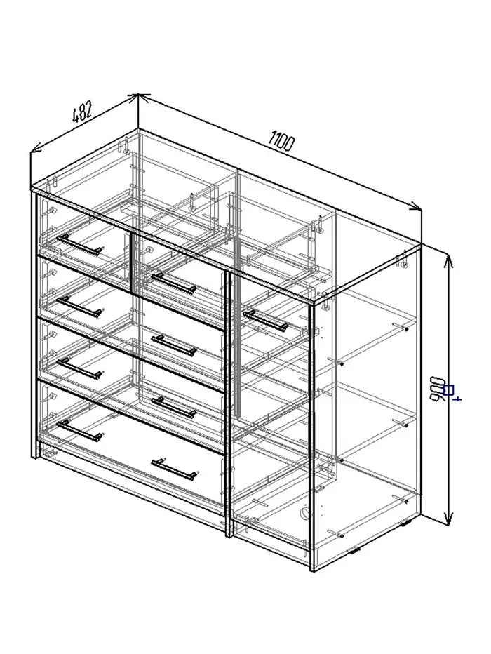 Комод напольный «Клик Мебель», 5 ящиков, с дверью, 1100×480×900 мм, цвет тёмно - серый — Характеристики
