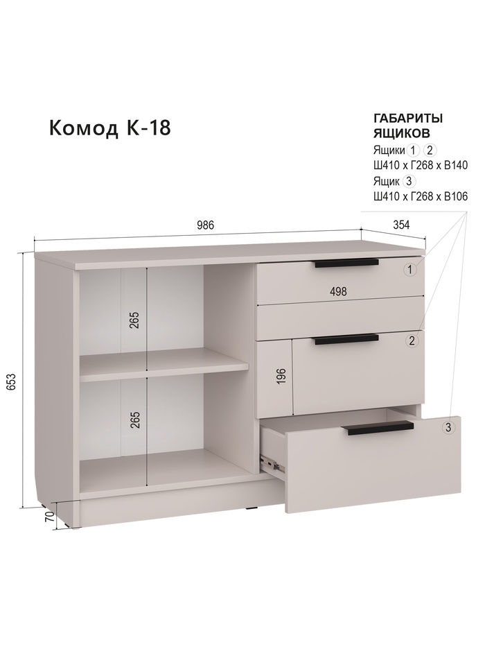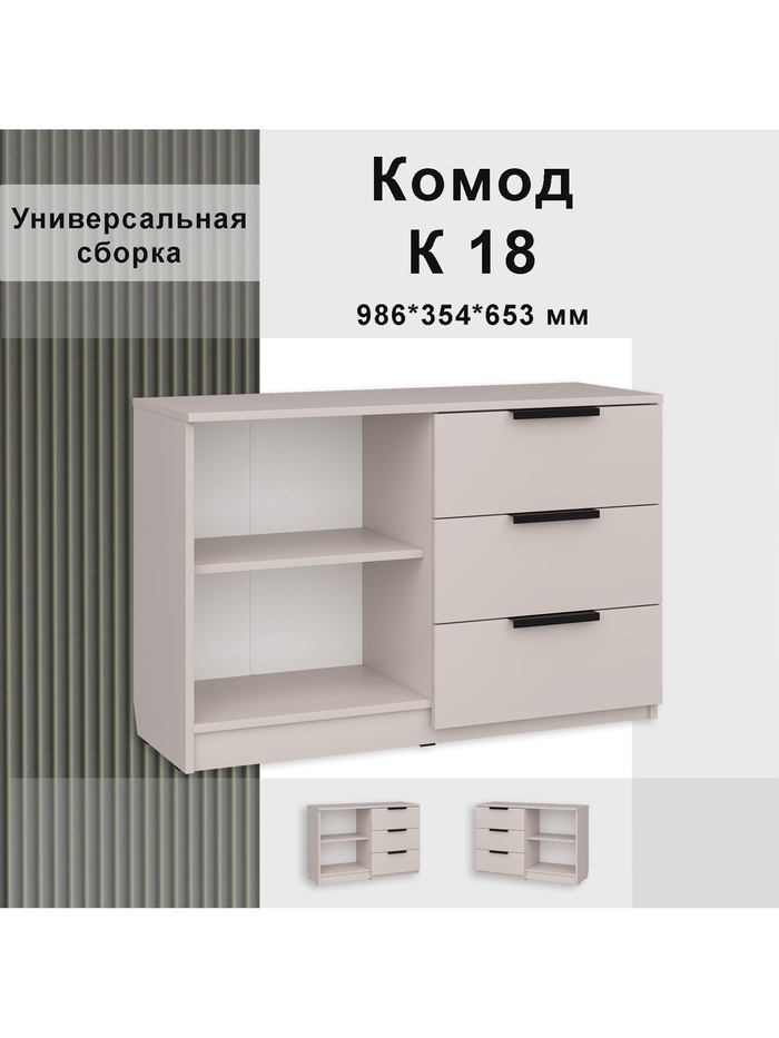 Комод напольный №18, 3 ящика, 986×354×653 мм, цвет кашемир — Характеристики