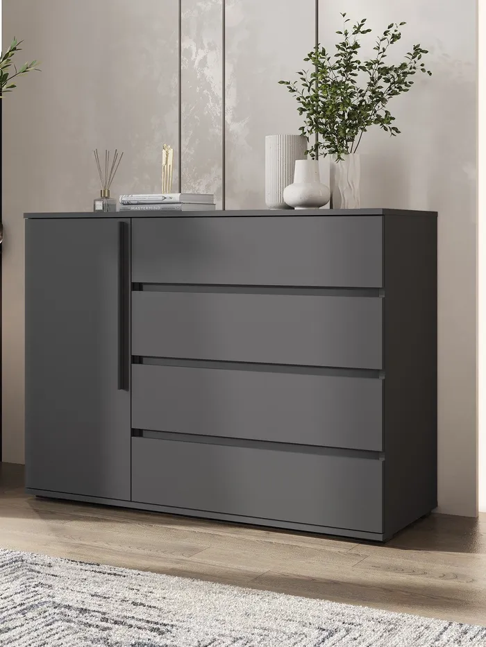 Комод напольный «Норд», 1 дверь, 4 ящика, 1200×450×900 мм, цвет графит/графит — Характеристики