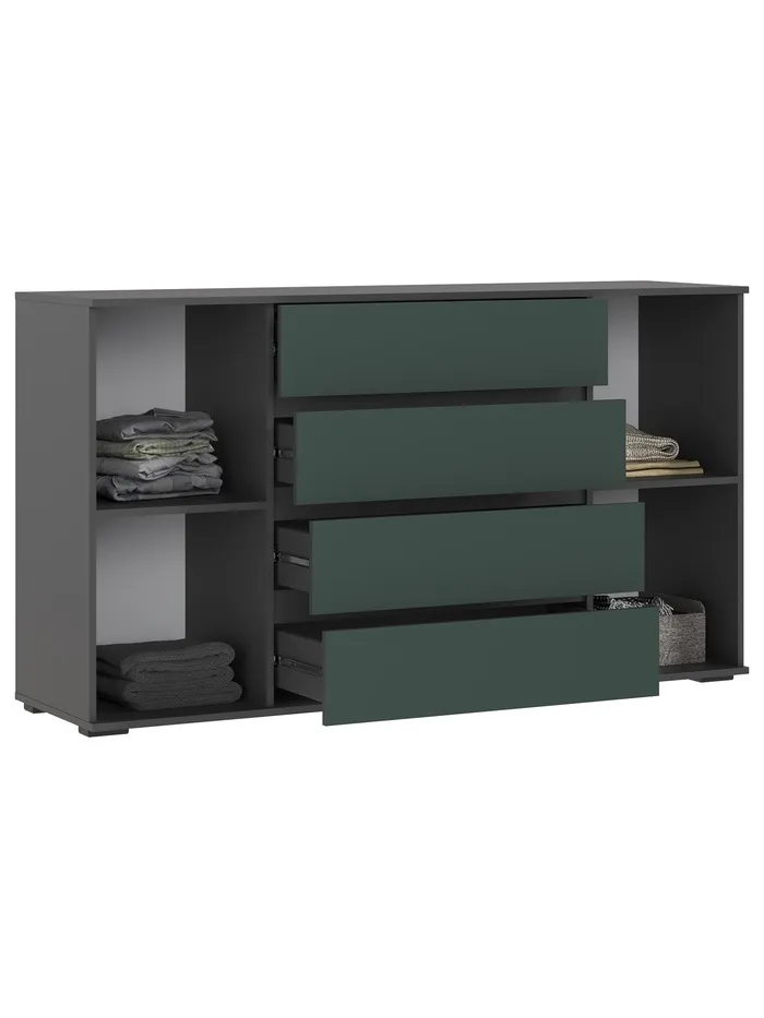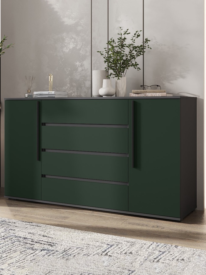Комод напольный «Норд», 2 двери, 4 ящика, 1600×450×900 мм, цвет изумруд/графит — Характеристики