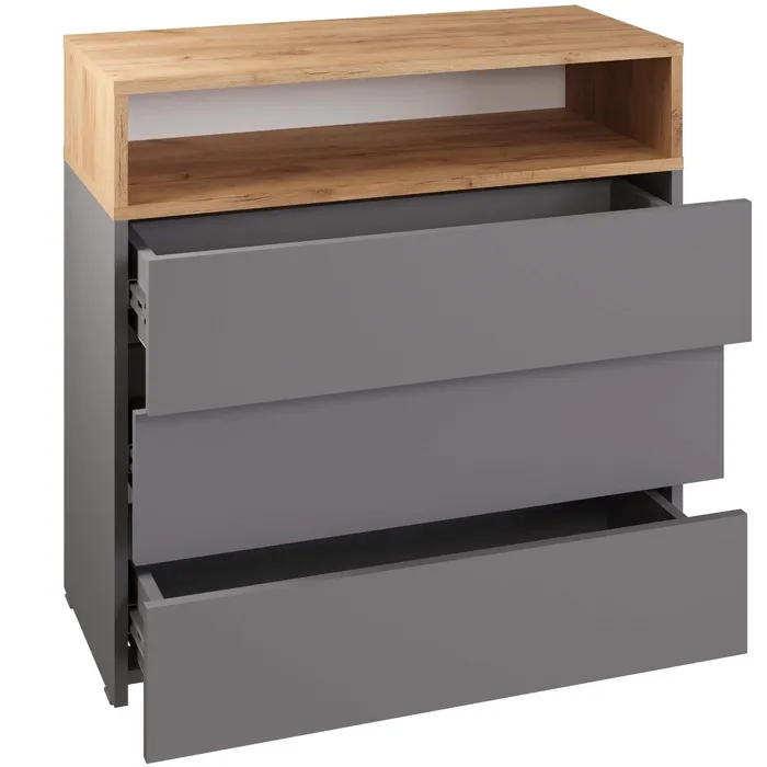 Комод напольный «Нова», 3 ящика, 750×330×736 мм, цвет серый шифер/дуб крафт золото