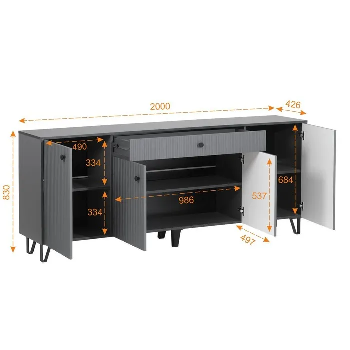 Комод Оливия, 2000х426х830, Графит/Графит Софт МДФ — Характеристики