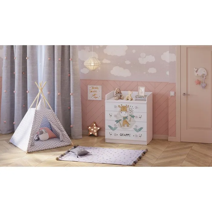 Вместительные выдвижные ящики комода шириной 80 см с системой плавного закрытия позволят удобно хранить все детские принадлежности. Когда малыш вырастает из возраста пеленания, поверхность может быть снята, тогда комод приобретет классический вид.