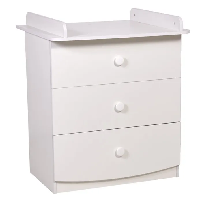 Комод Фея 1580 оснащен откидным пеленальным столиком, благодаря чему отлично подходит для смены подгузника, массажа или переодевания ребенка. При откидывании пеленальной поверхности по всем сторонам образуются плавные защитные бортики.