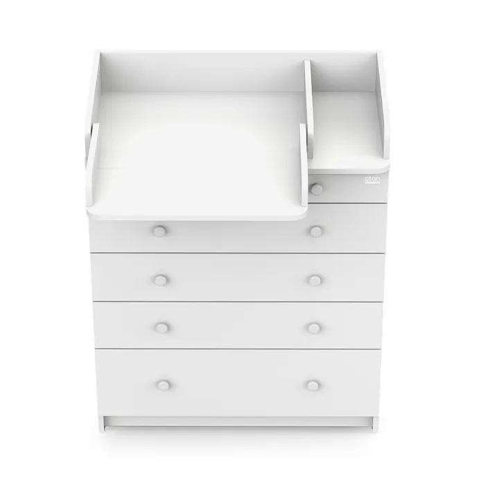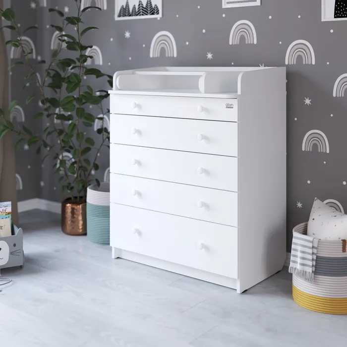 Удобный, практичный и очень функциональный комод Атон LEO с узким, откидным пеленальным столиком для новорожденных, 5 ящиками и органайзером для мелочей идеально впишется в любой интерьер детской комнаты, благодаря большому выбору цветовых сочетаний и стильному дизайну. Корпус изготовлен из качественного ЛДСП. Фасады ЛДСП.