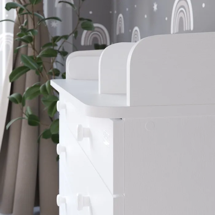 Рядом с пеленальной поверхностью есть отделение для средств по уходу за малышом в быстром доступе. Ящики для одежды большие, глубокие и вместительные.