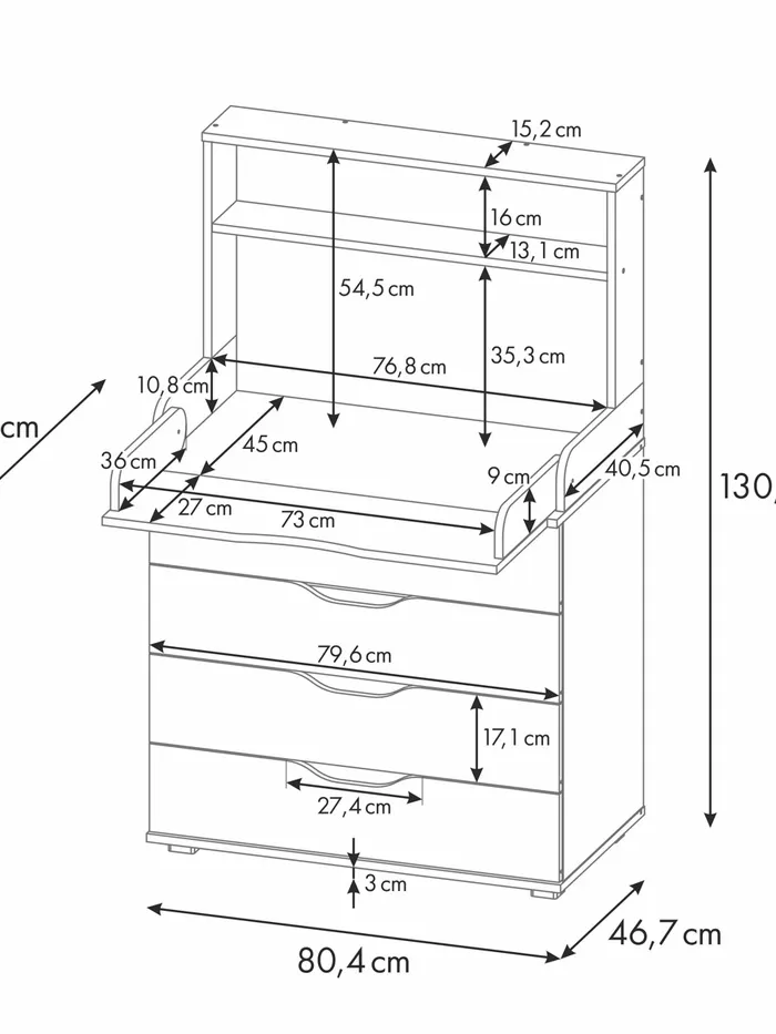 В сложенном состоянии пеленальная поверхность превращается в дополнительную полку и нишу для вещей.