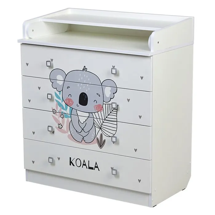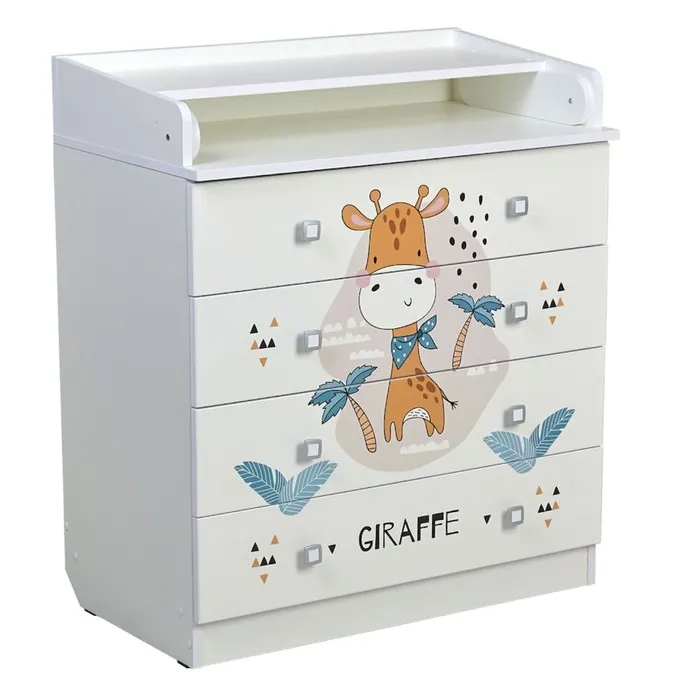 Комод имеет 4 вместительных ящика на шариковых направляющих, в которых удобно хранить детские вещи, аксессуары и игрушки.