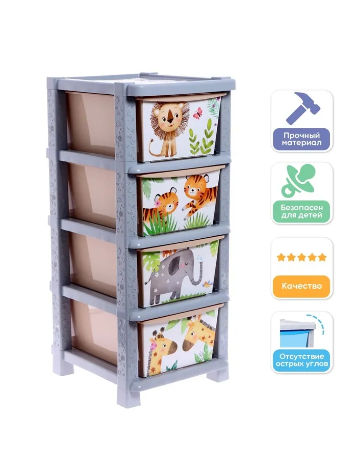Комод пластиковый детский «Счастливое детство», 4 секции