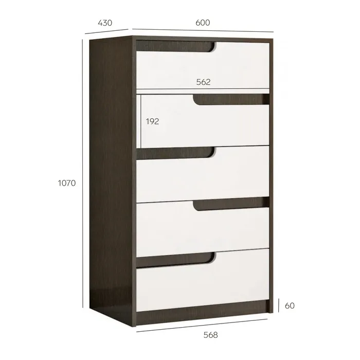 Комод с 5-ю ящиками "Розалия", 600 х 430 х 1070, Венге/Белый глянец — Характеристики
