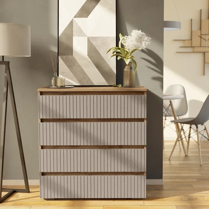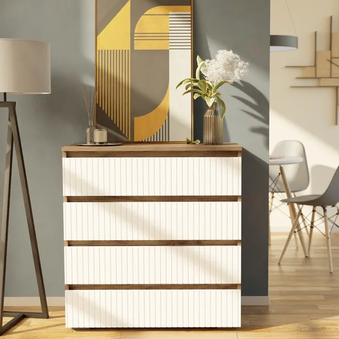 Комод Розалия - это изящный и функциональный элемент мебели, созданный для дополнения интерьера вашей спальни. Его габариты делают комод идеальным по размеру для размещения в комнате, обеспечивая удобство и доступность необходимых вещей. Корпус выполнен в классическом сочетании цветов венге и белого глянца, что придает элегантность и утонченность. Цвет венге добавляет теплоты и уюта, а белый глянец привносит нотки современного стиля и света в комнату. Конструкция включает в себя пять выдвижных ящиков, предоставляющих достаточно места для хранения различных личных вещей, таких как одежда. Ящики плавно выдвигаются и закрываются благодаря качественным направляющим. Комод Розалия станет прекрасным дополнением к вашему интерьеру, сочетающим в себе эстетику и функциональность