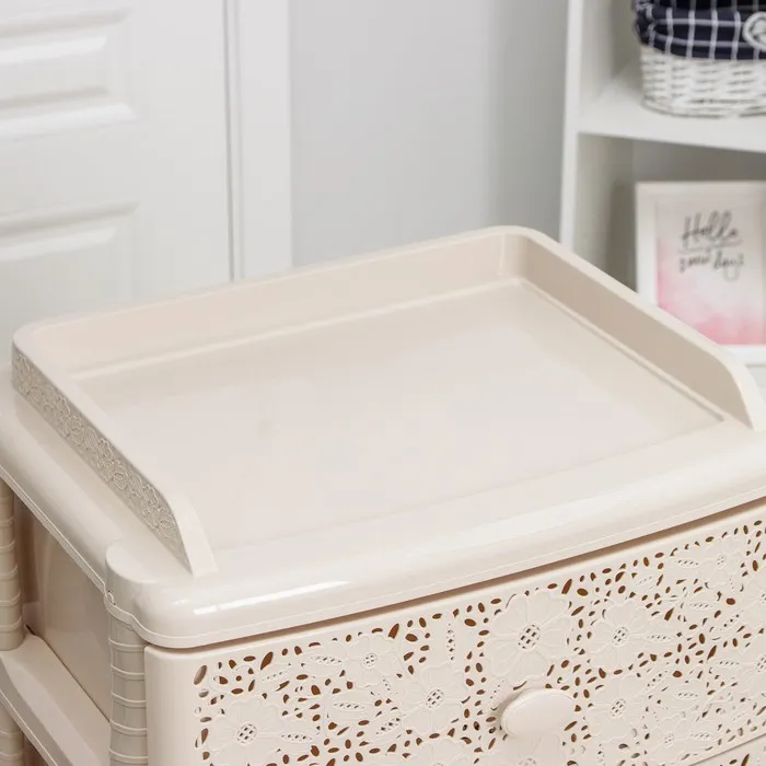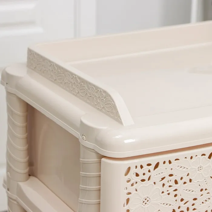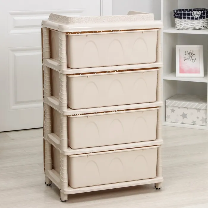 С помощью практичного пластикового комода вы правильно организуете хранение вещей. Изделие имеет жёсткую конструкцию за счёт цельных боковых стенок. Отсутствие острых углов делает его безопасным для ребёнка. Комод изготовлен из экологически чистого материала, не содержит вредных веществ.