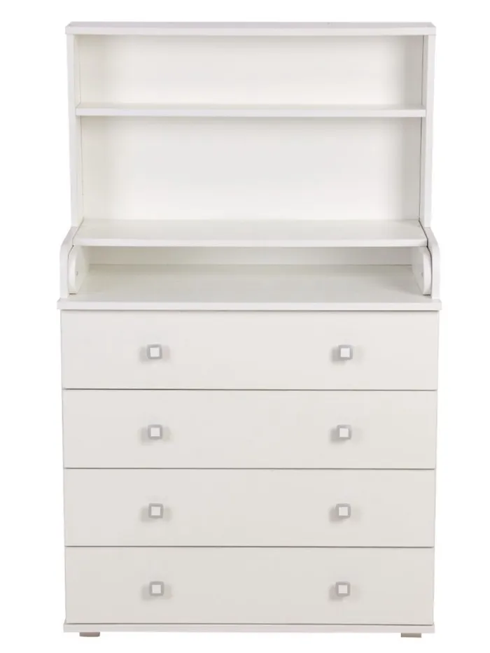 Комод имеет 4 вместительных ящика на шариковых направляющих, в которых удобно хранить детские вещи, аксессуары и игрушки.