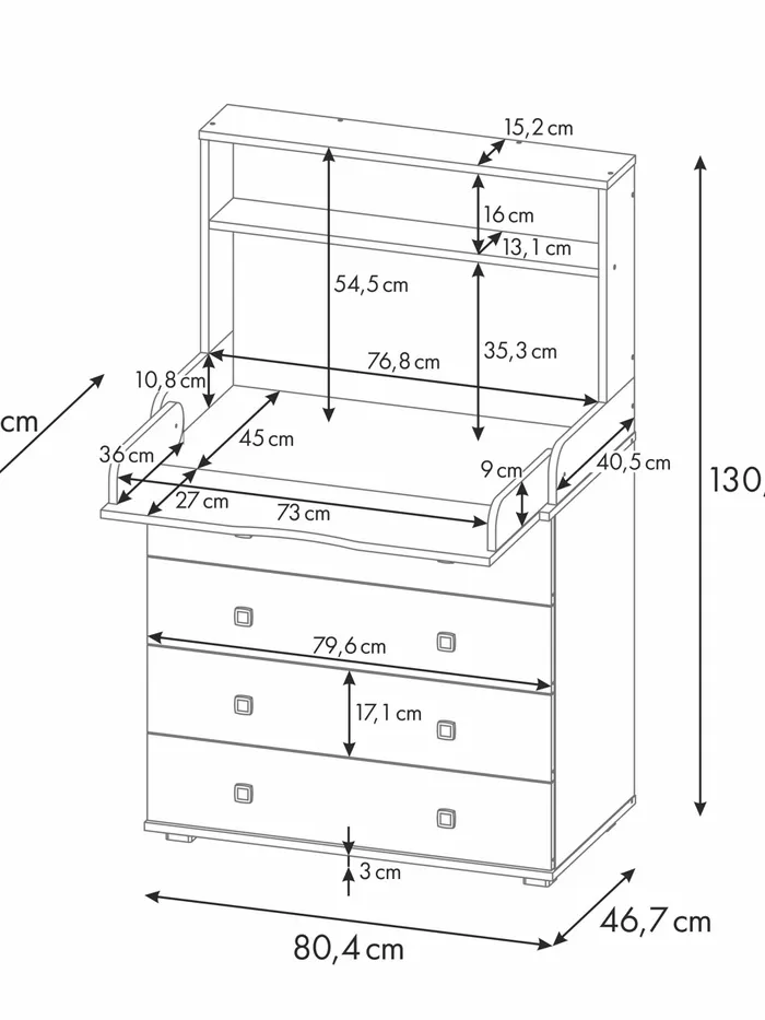 В сложенном состоянии пеленальная поверхность превращается в дополнительную полку и нишу для вещей.