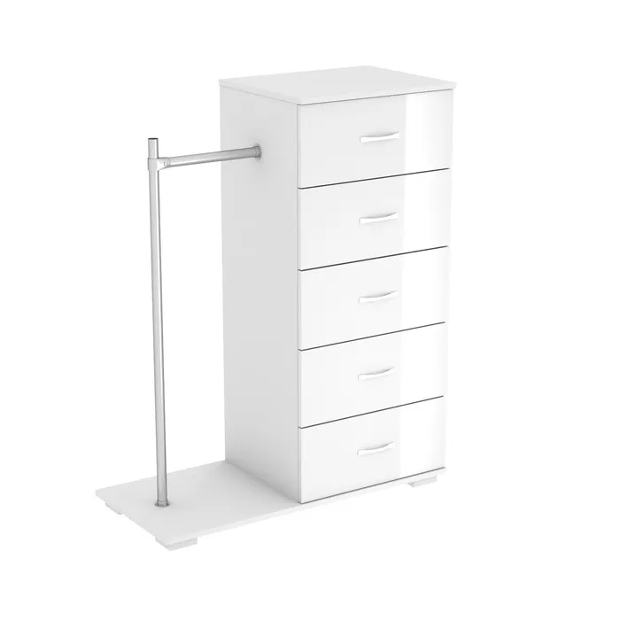 Комод "Турин", 930х415х1050, Белый, Белый глянец – это стильное и практичное решение для вашей современной комнаты. Комод Турин может заменить вам даже громоздкий большой шкаф. В нем есть пять ящиков, которые помогут вам разместить всю необходимую одежду и предметы вашего гардероба, а удобная штанга для плечиков поможет вещам оставаться поглаженными и опрятными, когда это так необходимо.