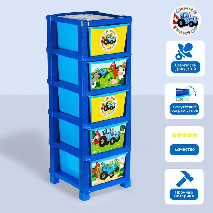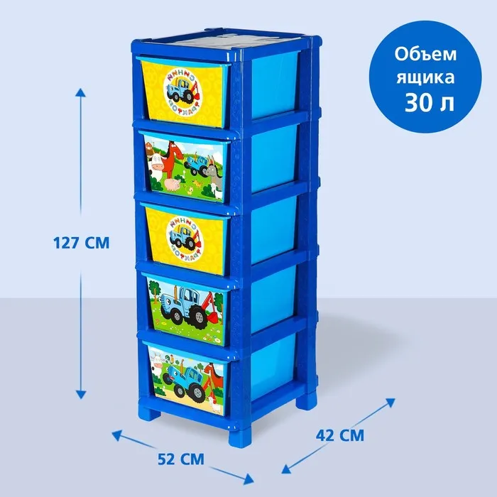 Комод универсальный №1 «Синий трактор», 5 секций, 127 × 52 × 42 см — Характеристики