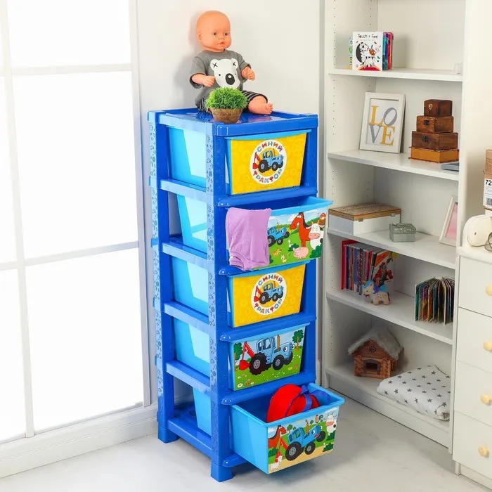 Комод универсальный №1 «Синий трактор», 5 секций, 127 × 52 × 42 см