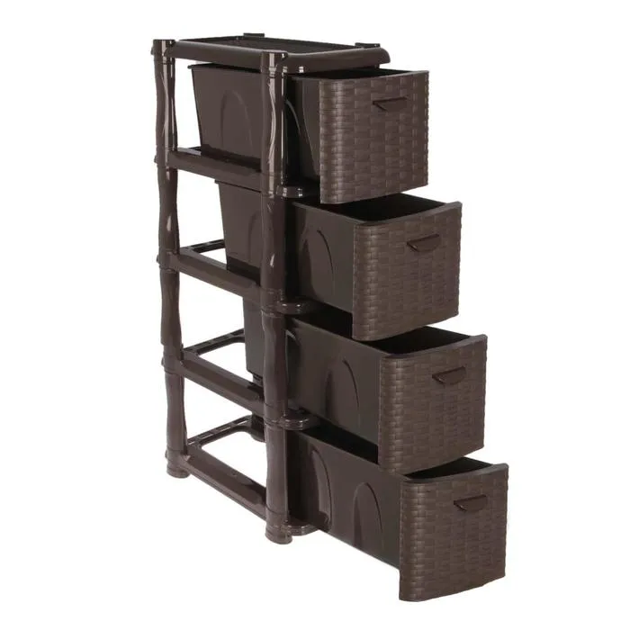 Комод узкий 4-х секционный «Ротанг», коричневый