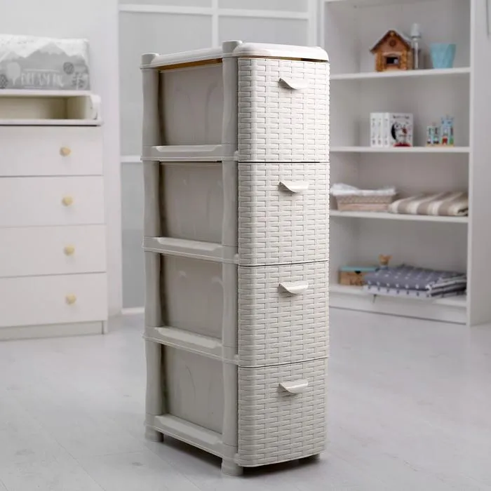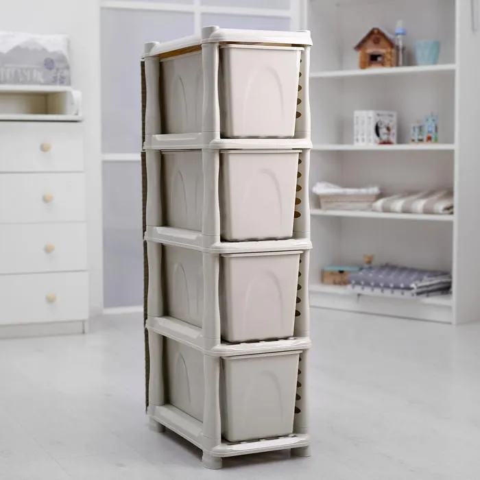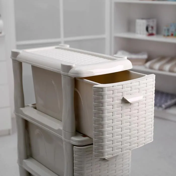 С помощью практичного пластикового комода вы правильно организуете хранение вещей. Изделие имеет жёсткую конструкцию за счёт цельных боковых стенок. Отсутствие острых углов делает его безопасным для ребёнка. Комод изготовлен из экологически чистого материала, не содержит вредных веществ.