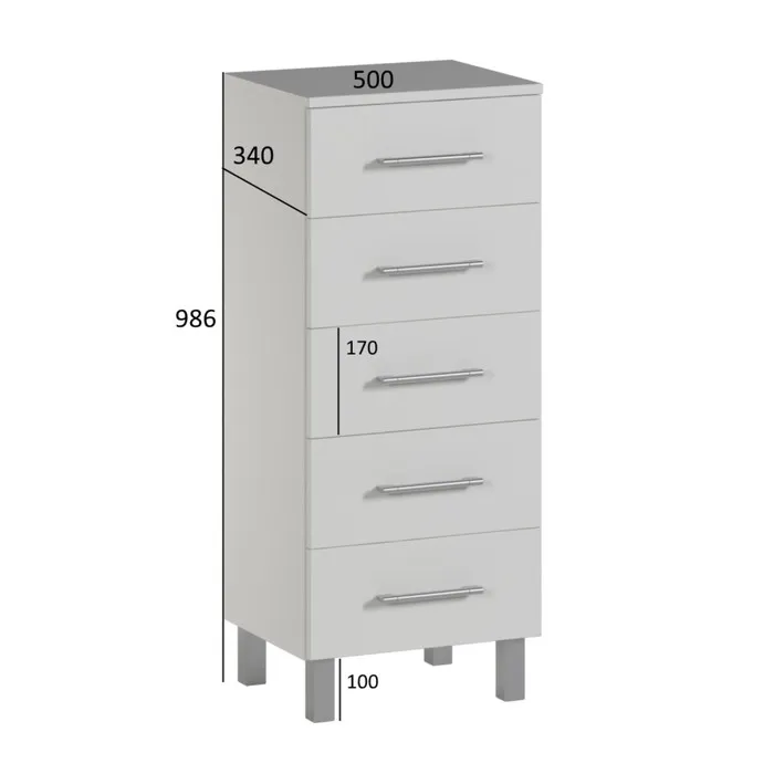 Комод высокий для ванной комнаты, белый, 50 х 34 х 98,6 см — Характеристики