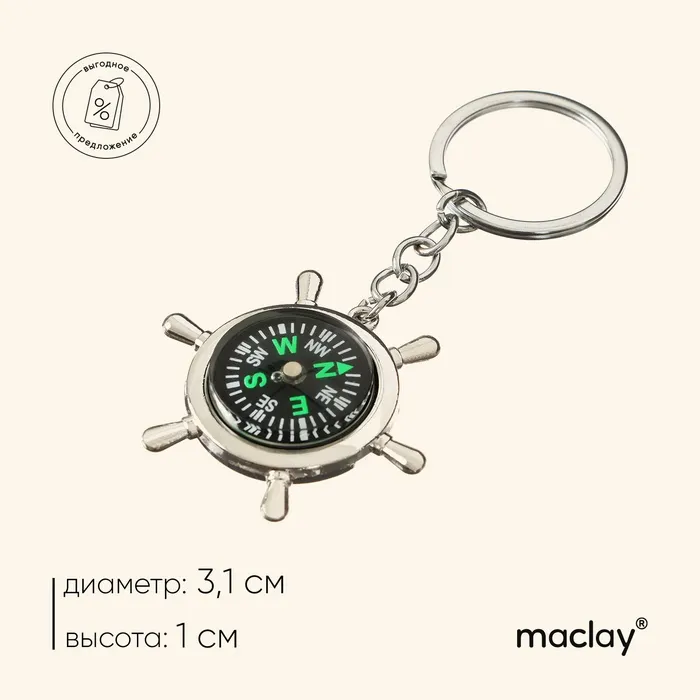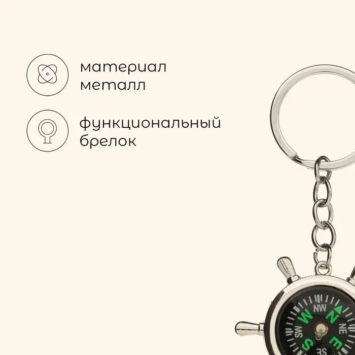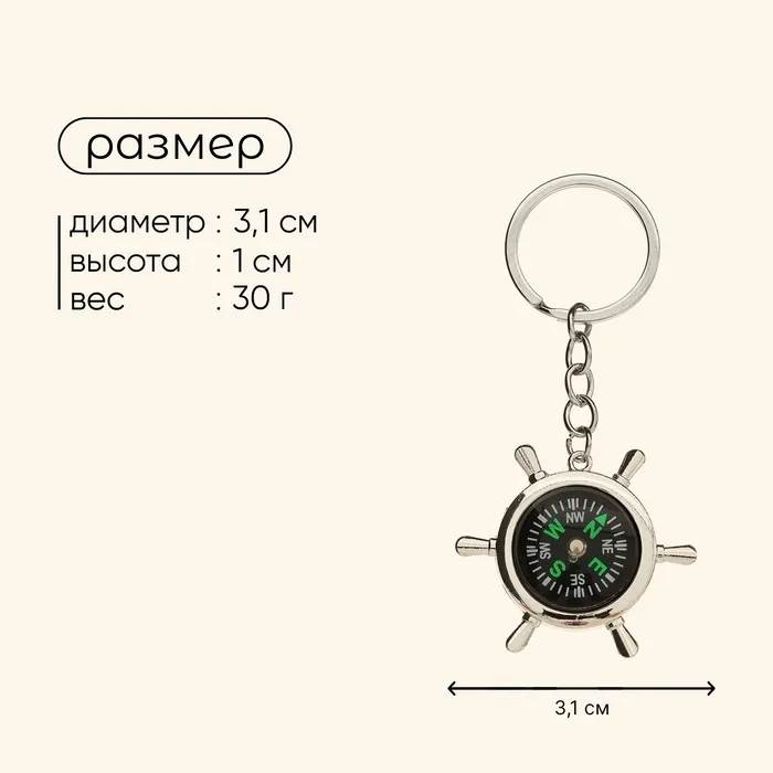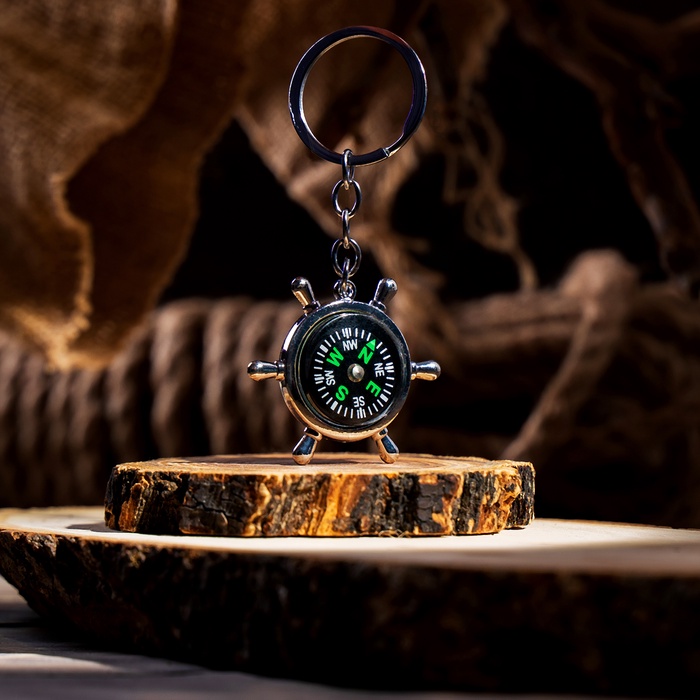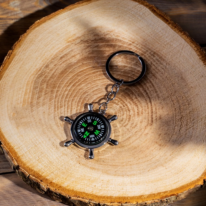 Сувенирный компас-брелок — это стильная вещь, которая подчеркнёт индивидуальность хозяина. Дизайн в виде штурвала с изображением компаса и прочный металлический каркас, безусловно, привлекут внимание и дополнят ваш образ. За счёт небольших габаритов, украшение поместится где угодно, будь то карман или сумка. С таким аксессуаром вы никогда не потеряете ключи.