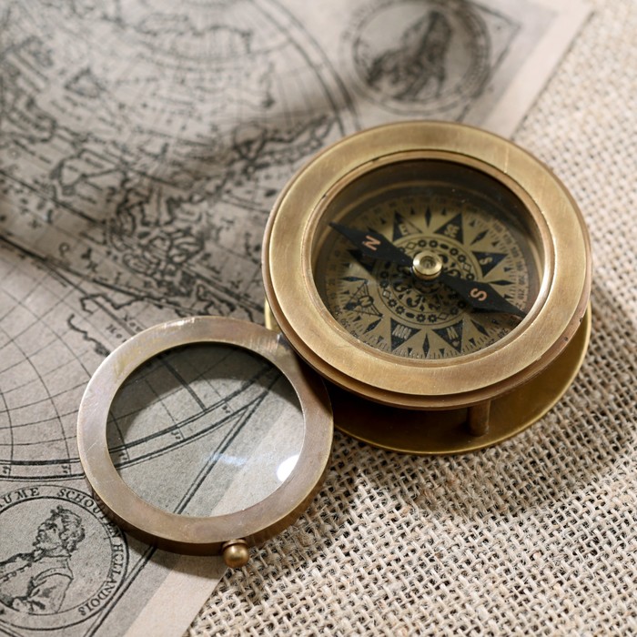 Компас "Компас и лупа" латунь 7х7х2,5 см — Характеристики
