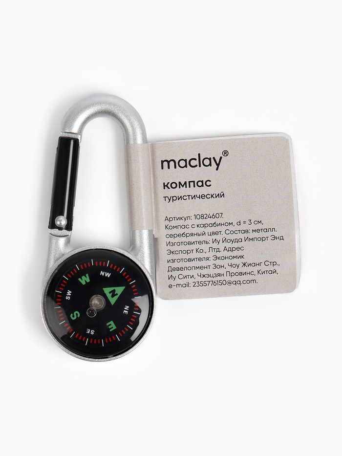 Компас Maclay 2603, с карабином, d=3 см, МИКС