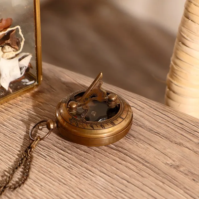 Компас с солнечными часами "Антик" латунь, на цепочке 5 см — Характеристики