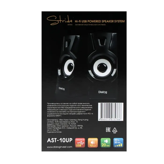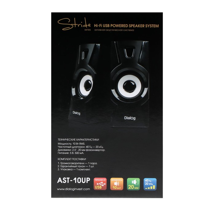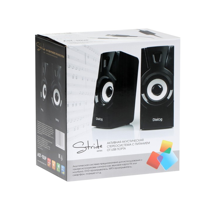 Компьютерные колонки Dialog Stride AST-10UP, 2.0, 2х5 Вт, Jack 3.5 мм, USB, LED подсветка, чёрные — Характеристики