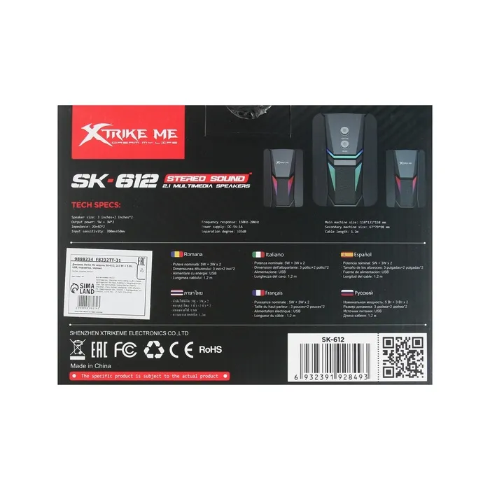 Колонки Xtrike Me SK-612 — это не просто качественный звук, но и эффектный элемент декора для вашего рабочего места или развлекательного уголка. Независимо от того, играете ли вы в игры или наслаждаетесь музыкой, они сделают процесс прослушивания по-настоящему увлекательным.