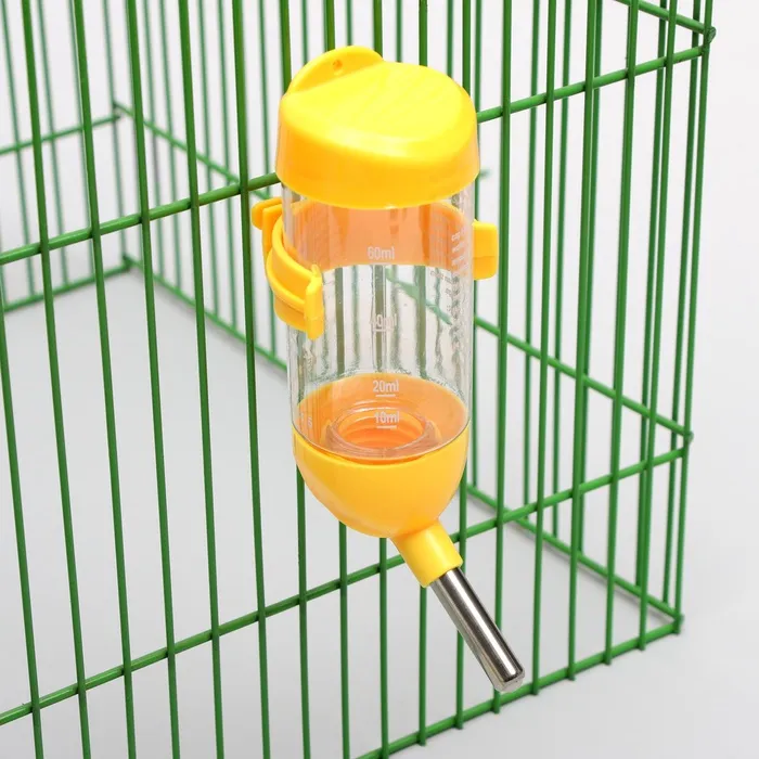 Поилка для грызунов, цилиндрической формы с креплением между прутьями клетки или подвесом. Поилка оснащена небольшим носиком, с металлическим шариком, который препятствует вытеканию воды. Изготовлена из качественного, пищевого пластика, легко моется. Прозрачная бутылка позволяет проверить уровень воды. Идеально подойдет для мелких грызунов и шиншилл.