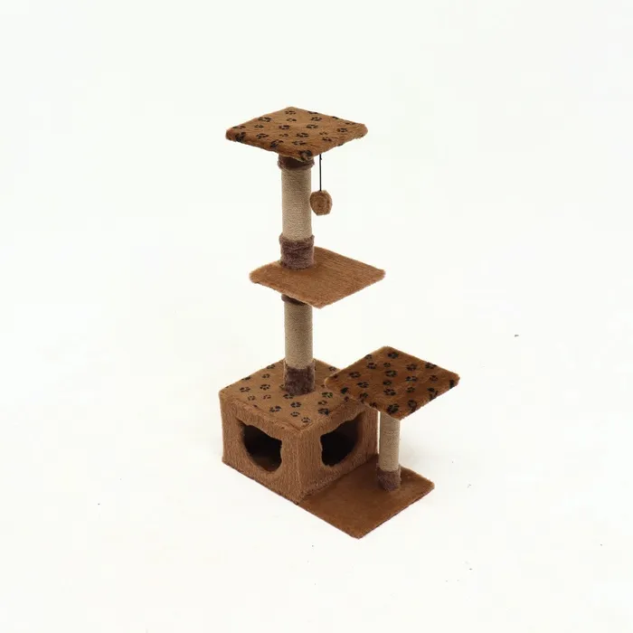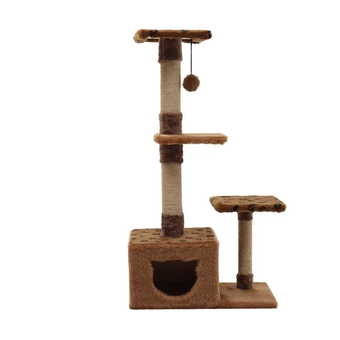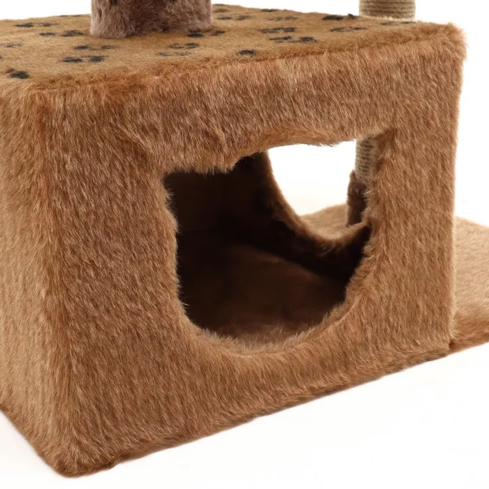 Первый уровень комплекса представляет собой закрытый домик, где кошка может уединиться и отдохнуть в тишине. Второй и третий уровни предлагают просторные площадки, идеально подходящие для наблюдения за окружающей обстановкой, прыжков и игр. Джутовые столбики-когтеточки помогут сохранить мебель в целости, удовлетворяя естественную потребность питомца в стачивании когтей.