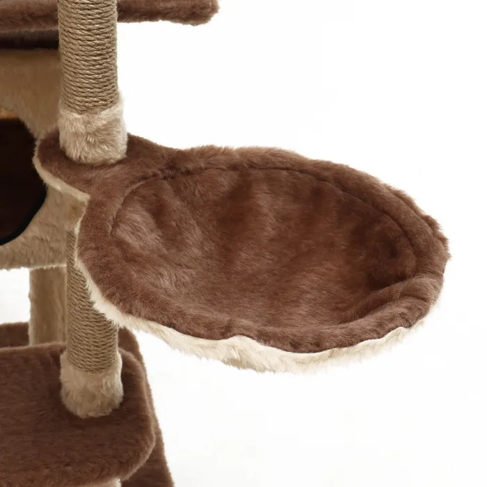 Этот просторный комплекс высотой 163 см предлагает восемь уровней для активности, отдыха и релаксации. Изготовленный из прочных материалов, таких как джут и искусственный мех, он обеспечит надежность и долговечность. Когтеточки из джута помогут вашей кошке поддерживать когти в идеальном состоянии, избегая повреждения мебели. Комплекс оснащен двумя уютными домиками, где ваш питомец сможет укрыться от суеты, а также мягкими гамаками для комфортного сна.