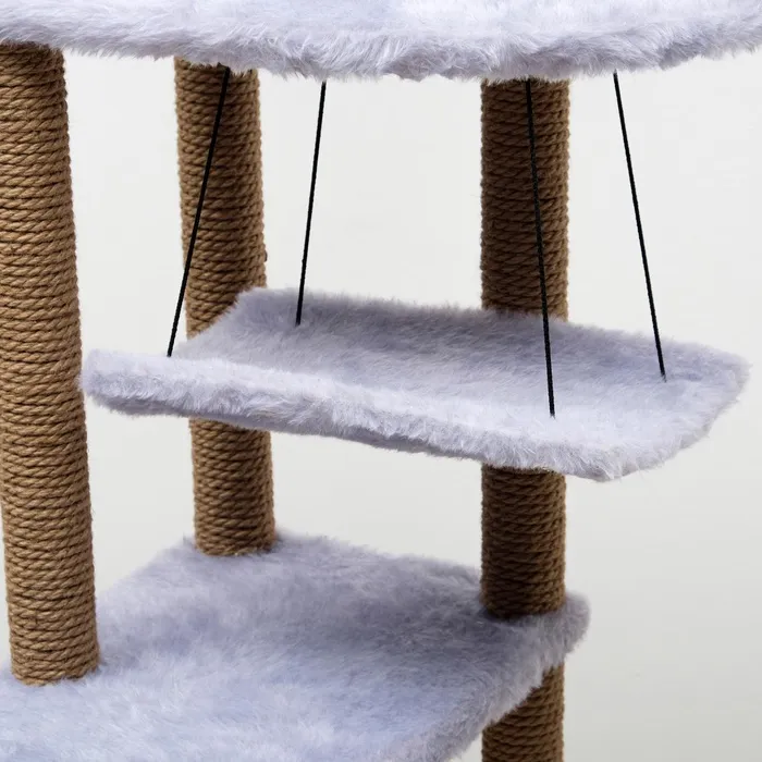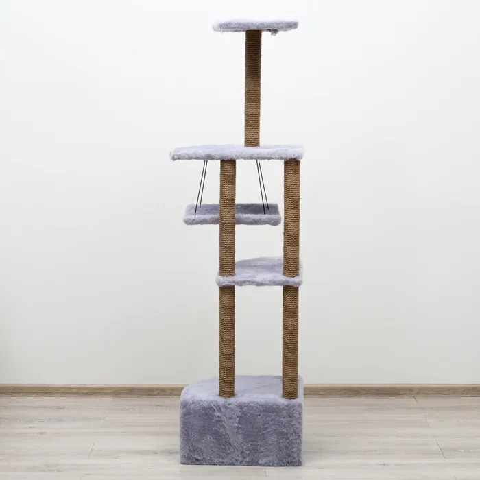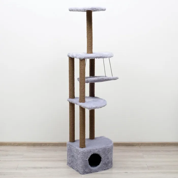 Этот комплекс станет идеальным решением для активных кошек, любящих прыгать, лазать и наблюдать за всем происходящим вокруг. Обеспечьте своему питомцу комфорт и радость с этим стильным и функциональным уголком для игр и отдыха!