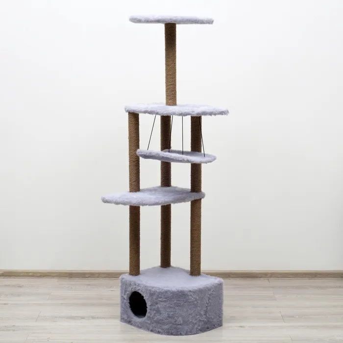 Подарите своему любимцу настоящий оазис для игр и отдыха с великолепным комплексом для кошек от бренда Пижон. Этот угловой комплекс высотой 171 см станет не только любимым местом для вашего питомца, но и стильным элементом интерьера, который легко разместить в любом углу комнаты.