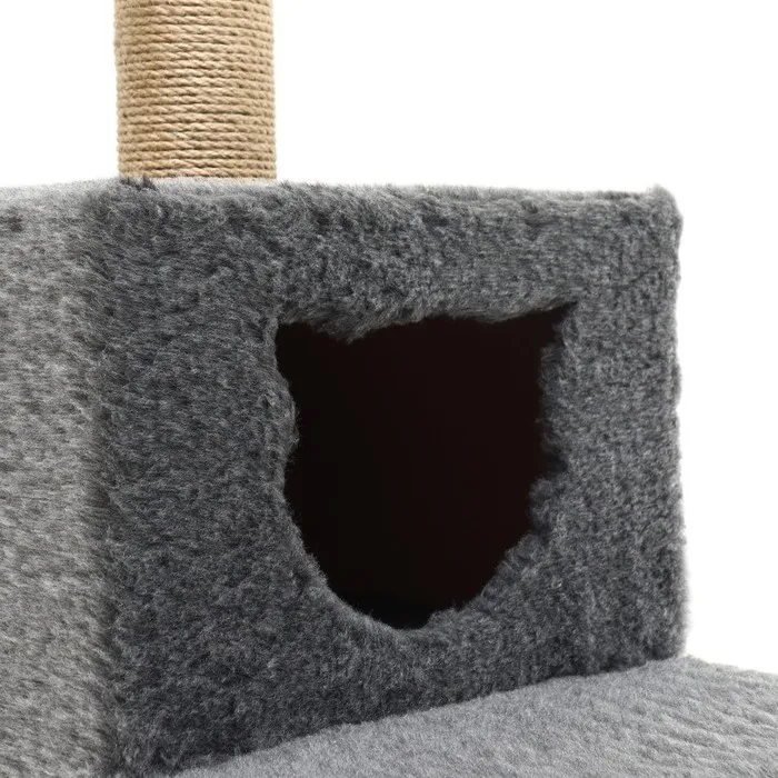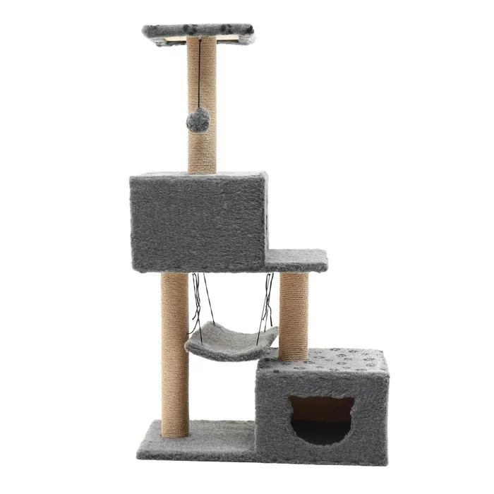 Комплекс также имеет 2 домика, где кошка может спрятаться и отдохнуть, а также гамак, где она может полежать и наблюдать за окружающей обстановкой.