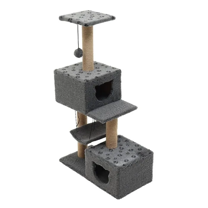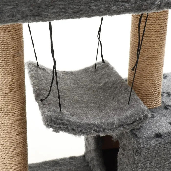 Когтеточка оснащена широкими столбами, которые позволяют кошке точить когти и растягиваться.