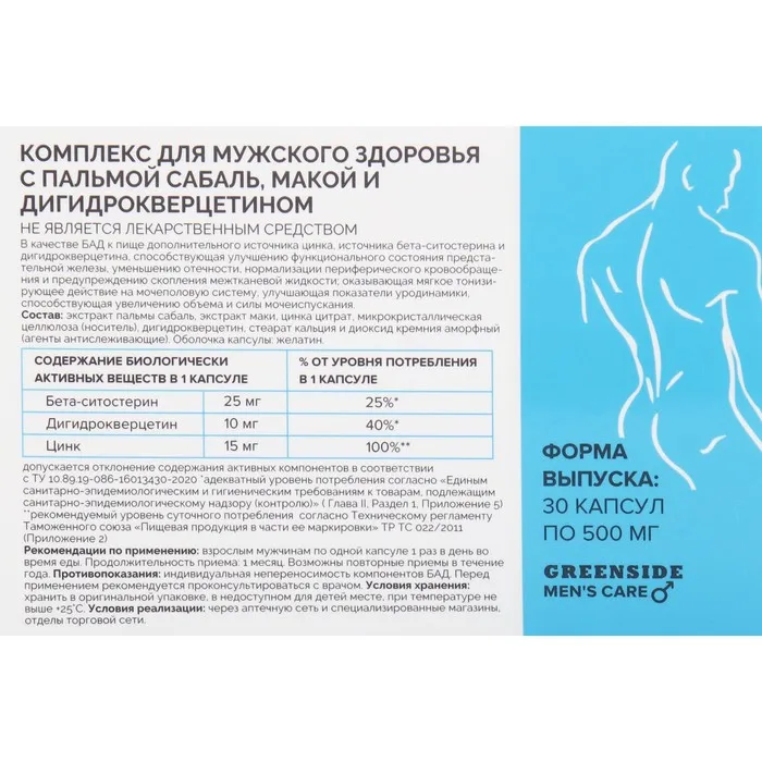 КОМПЛЕКС ДЛЯ МУЖСКОГО ЗДОРОВЬЯ С ПАЛЬМОЙ САБАЛЬ МАКОЙ И ДИГИДРОКВЕРЦЕТИНОМ