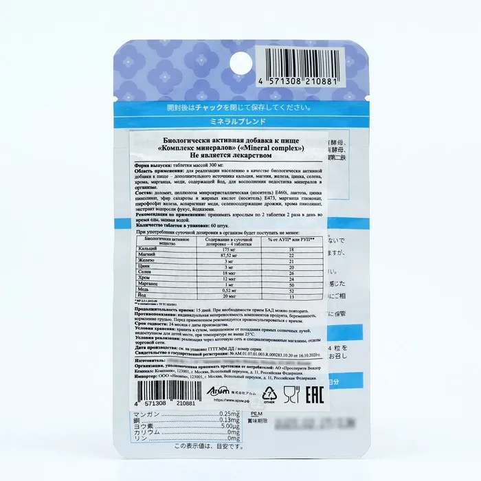 Формула препарата «Комплекс минералов» содержит полноценный набор незаменимых микроэлементов, дефицит которых часто встречается при несбалансированном питании, активных физических нагрузках, ряде нарушений обмена вещества и метаболизма, а также в пожилом возрасте. Большая часть из компонентов комплекса получена из природных источников для улучшения их усвоения организмом и биодоступности. Прием препарата направлен на предотвращение развития дефицита кальция, магния, железа, цинка, марганца, хрома, йода, меди и селена, ответственных за большое количество обменных процессов в организме. Поддержание этих микроэлементов на должном уровне помогает бороться с чувством усталости, снижением концентрации и внимания, предотвращает возникновение расстройств памяти, диабета, артрита и других аутоиммунных заболеваний, улучшает состояние кожи, слизистых оболочек и сосудов.