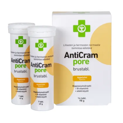 AntiCram pore - это шипучие таблетки со вкусом сочного апельсина. Способствует нормальному функционированию мышц и нервной системы. Может использоваться в связи с обильным потоотделением, например, во время занятий спортом или в летнюю жару. Содержит хлорид натрия (соль).
