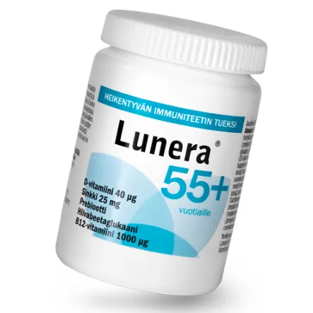 Lunera 55+ поддерживает здоровье организма и замедляет процессы старения, благодаря витамину D 40, цинку, пребиотику полидекстрозе, дрожжевому бета-глюкану и витамину В12. С возрастом иммунитет снижается. Lunera 55 + предназначен для замедления ослабления иммунной системы. Это базовая, ежедневная добавка для поддержания здоровья организма людей старше 55 лет.