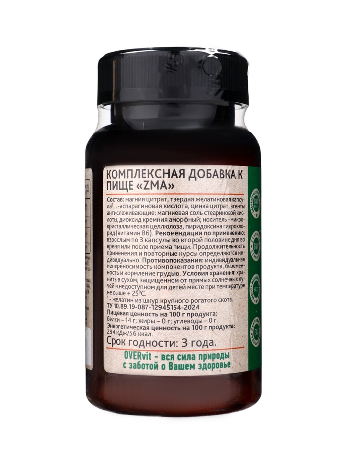 Комплексная добавка к пище ZMA OVERvit, 90 капсул — Характеристики